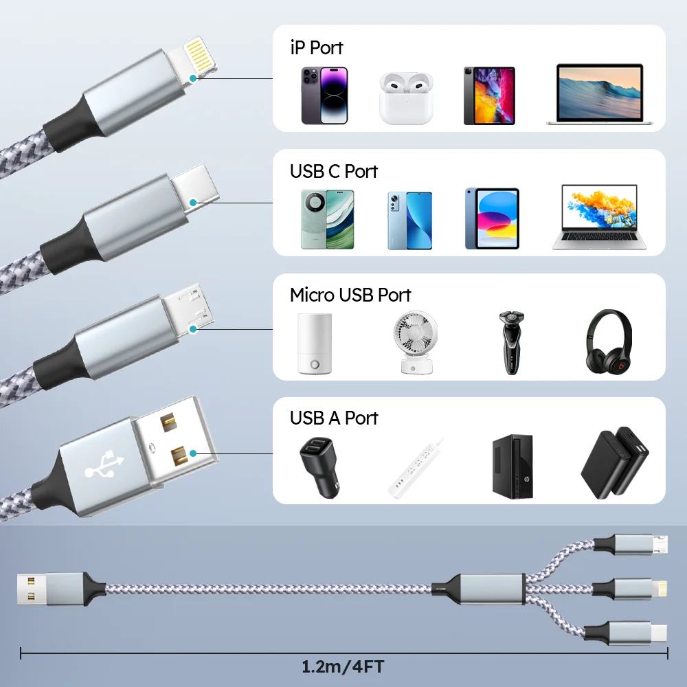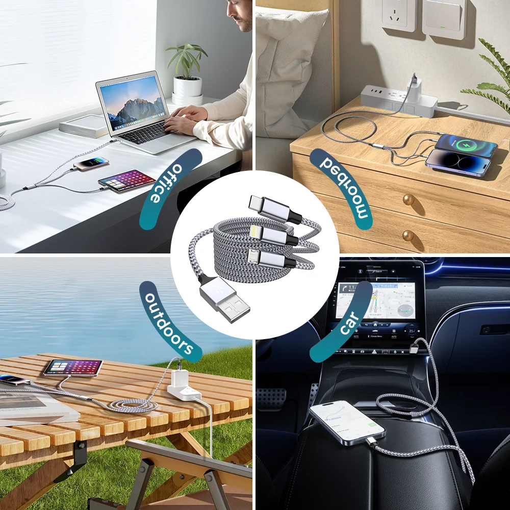 [3-in-1 Charging cable and wide compatibility] This USB multi-function charging cable set is compatible with all devices, allowing you to easily charge multiple devices at the same time.