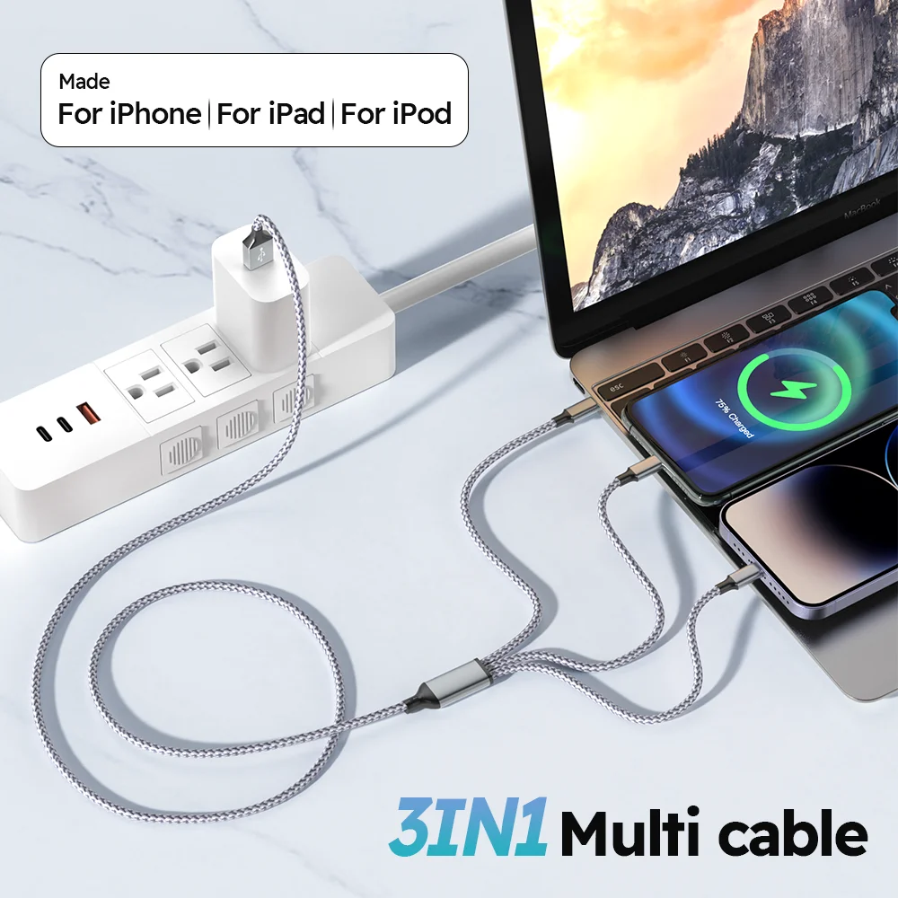 3 In 1 USB cable Type C Usb Micro For Iphone Samsung Huawei Xiaomi Multi Port Multiple Usb