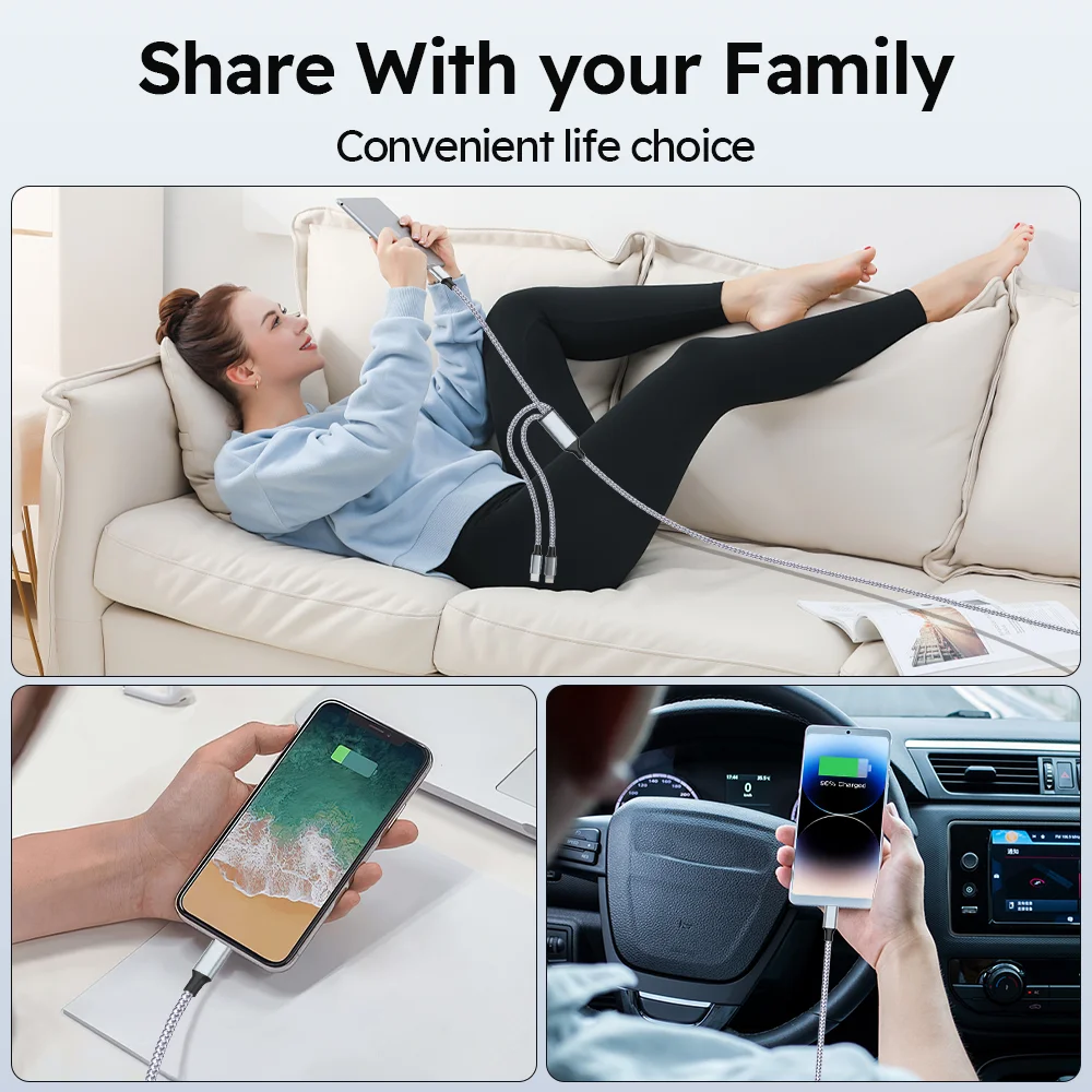 【 Fast and safe charging cable 】 Safety is the most important! This multi-charge cable provides stable voltage and current protection to ensure that your device is safely charged at maximum speed. In addition, the iPhone charger cable also supports data transfer with speeds of up to 480 Mbps, allowing you to transfer files in seconds.