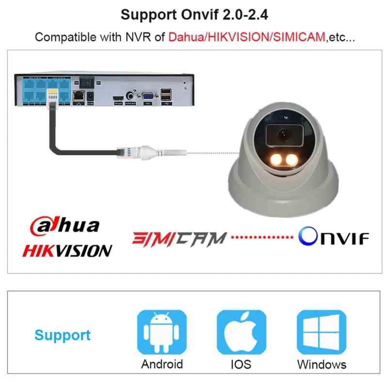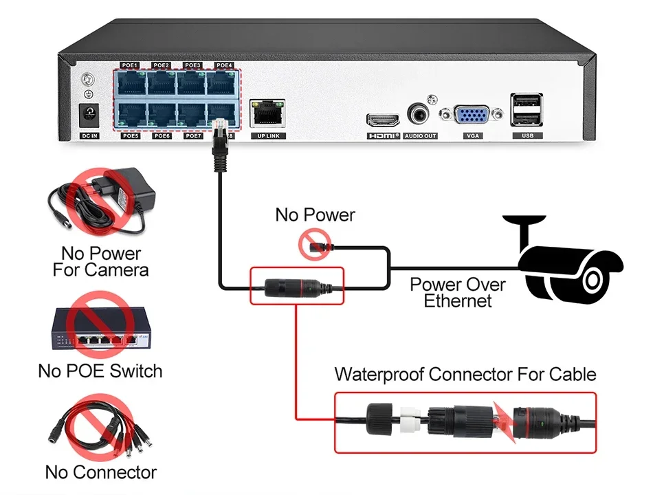 A real play and plug security! It features POE (Power over Ethernet), with a single cable connecting each IP camera to the NVR for both power supply and video and single transmission. Easy wiring - the wiring process can't be simpler for DIY enthusiasts and beginners